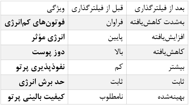 • حذف بخش قابل‌توجهی از فوتون‌های کم‌انرژی